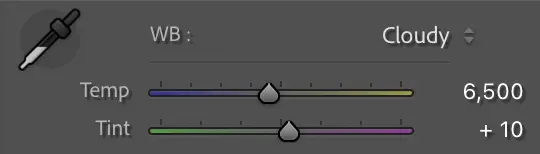 | Snow mountains | Cloudy + reduce blue saturation in HSL | 6,500K |