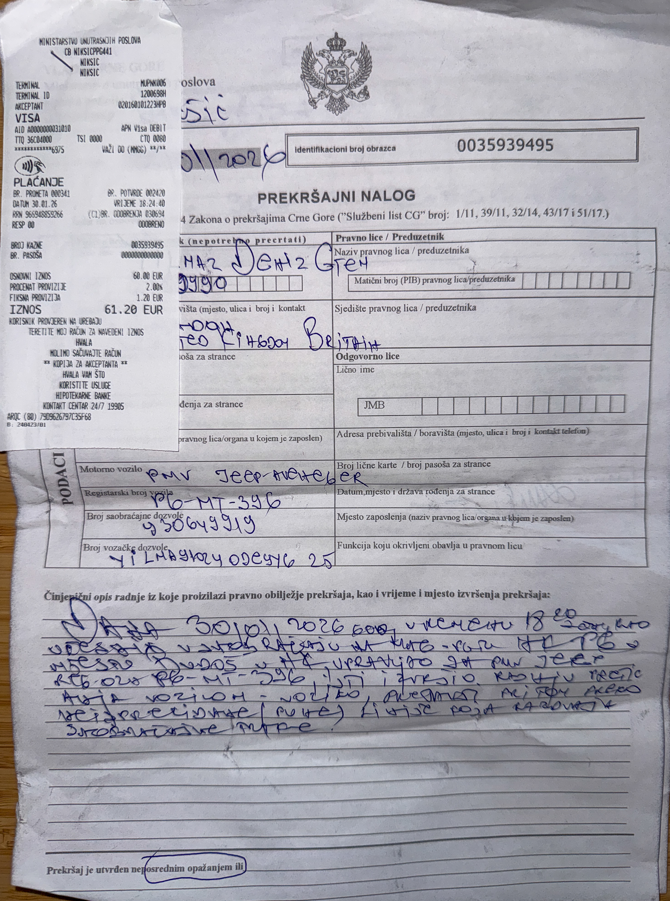 Leaving Nikšić on the way to Podgorica, there’s a long straight clear road. I was going about 100km/h and overtook a car. As soon as I passed, a policewoman flashed her torch and pulled me over. She seemed hostile at first. Gave her my documents and got a €60 ticket. Turns out I overtook on a solid white line. They were positioned right where it breaks into dotted and overtaking becomes legal. No speed gun so they couldn’t do me for speeding. Joked around with them a bit, they showed me all the tickets they’d issued. Seemed like they were just making money.