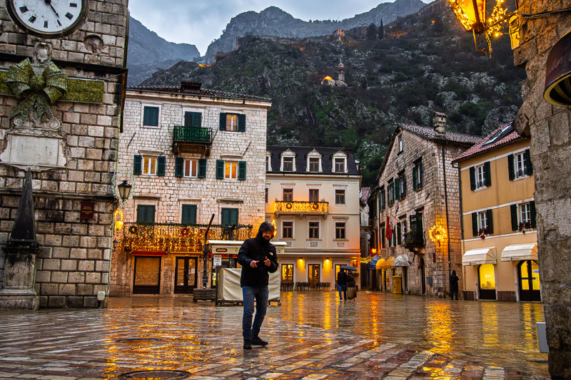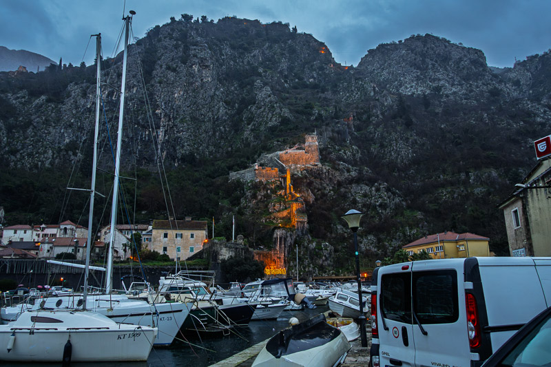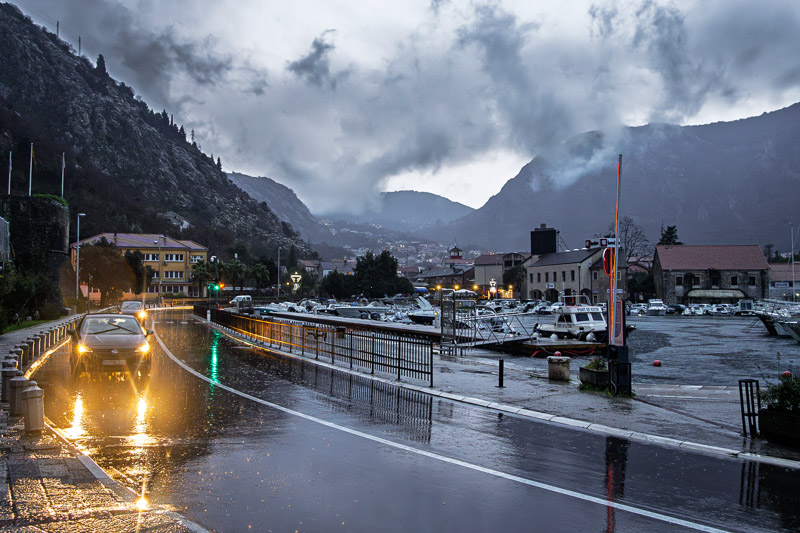 Got to Kotor around 4pm. Already getting dark. The rain was relentless. Heavy, non-stop. I struggled to take pictures. Trying to adjust settings, shelter the camera, deal with the low light. ISO was pushed to 2000 to 3000 at times. Eventually I gave up. I don’t like grainy images and it wasn’t worth fighting it.