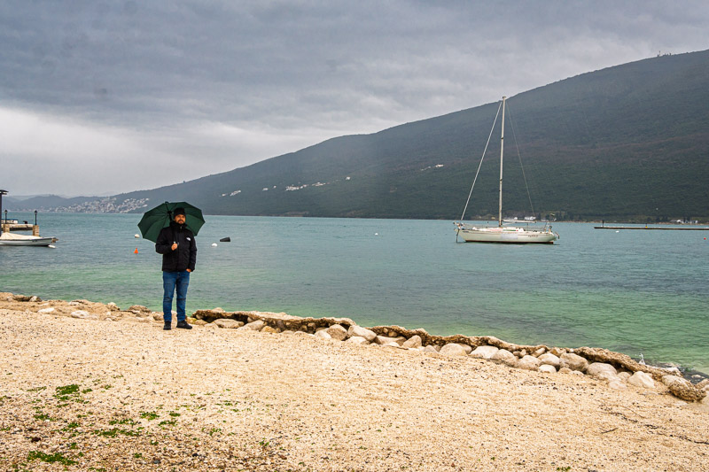 Set off for Kotor Bay. Put the destination into Google Maps and it took us to a random spot by the coast. Had to take a ferry to cross over. Took some pics on the ferry, then arrived at the destination. I was like, this can’t be it. Just a dry coastline. Took some photos together anyway, then it started raining heavily.